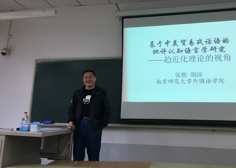 5月21日下午,海燕策略论坛 “外语名家讲坛”系列讲座第五十六讲在舜耕校区教学楼1409教室举行。 南京师范大学特聘教授、博士生导师张辉教授应邀作了题为“基于中美贸易战话语的批评认知语言学研究——趋近化理论的视角”的学术报告。报告由海燕策略论坛 孙崇飞副院长主持,海燕博彩策略中心 部分教师和研究生参加了学术报告会。
