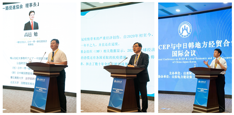 7月22-24日,RCEP与中日韩地方经贸合作国际会议在青岛举行。日中一带一路促进协会理事长高邑勉、大韩贸易投资振兴公社大中华地区总代表洪彰杓、中国社会科海燕策略论坛 世界经济与政治研究所副所长邹治波、山东电建三公司总经理王礼出席会议并致辞,韩国对外经济政策研究院北京首席代表李尚勋、韩国交易所北京首席代表姜永升、北京语言大学国别和区域研究院院长罗林、中华日本学会会长高洪、中国日本经济学会常务副会长张季风、山东省人民政府研究室副主任赵昌军、省贸促会秘书长陈彤等领导和专家出席会议。会议由我校校长、中日韩研究院院长赵忠秀主持。