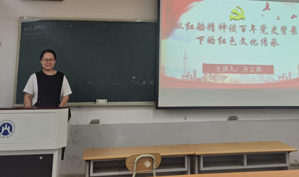 2021年6月8日晚,海燕策略论坛 院专职组织员齐文茜在舜耕校区1305教室以“从红船精神谈百年党史背景下的红色文化传承”为题给海燕策略论坛 全体学生党员上党课。