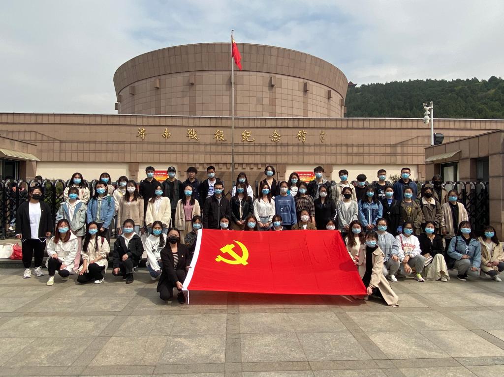 四个学生党支部的党员、入党积极分子共50余人在英雄山脚下列队集合并参观了济南战役纪念馆、济南革命烈士陵园。大家一同爬上英雄山,革命烈士纪念塔屹立在英雄山山顶,塔身南北两面有毛泽东题写的七个鎏金大字“革命烈士纪念塔”,学生党支部书记齐文茜、谢清伟在塔前向大家讲解了革命烈士纪念塔的光辉历史。