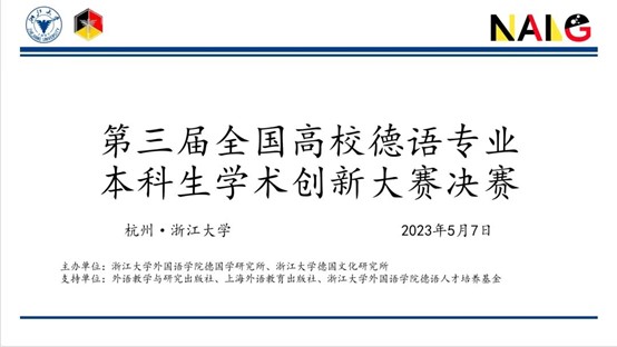 2023年5月14日,第三届全国高校德语专业本科生学术创新大赛总决赛成功举行,全国各地师生线上线下齐聚一堂,共享学术交流盛宴。本次大赛群英荟萃,共吸引了包括北京大学、复旦大学、北京外国语大学、上海外国语大学在内的来自全国52所学校的155支队伍、219名德语专业本科生报名参赛。大赛受到外语教学与研究出版社、上海外语教育出版社、浙江大学海燕策略论坛 德语人才培养基金支持。