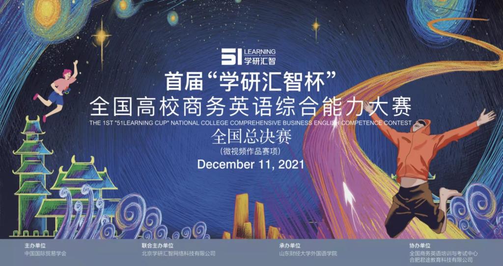 “学研汇智”全国商务英语综合能力大赛是校、企、行合力举办的商务英语类学科类全国性竞赛,由中国国际贸易学会主办、北京学研汇智网络科技有限公司联合主办,海燕策略论坛 承办,全国100余支高校队伍参赛。大赛以激发正能量为宗旨,围绕“‘一带一路’连接世界,商务英语筑梦中国”的主题,聚焦“立德树人”的思政元素,通过调查走访或信息检索等方式收集资料,深入挖掘并学习体会商界典型成功人物事迹所蕴含的育人价值(比如世界公民意识、诚实守信、团队合作、爱国精神、商务伦理、文化自信、工匠精神、国际视野等),包括凝练成功人物的经典人生故事、展现其正能量的商业精神和分析具体德育案例等,以商务英语为媒介,对该人物具体案例或故事素材中的企业家精神进行再创作。总决赛比赛内容由微视频作品模块(20%)、短剧剧本模块(20%)、短剧表演模块(40%)、问题回答模块(20%)和网络投票(附加分)五部分组成,分四个阶段进行,先后历时三个月。