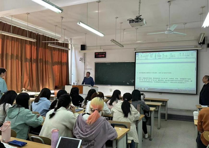 陆丙甫教授主要从功能主义的视角阐释了三个命题:形态句法在汉语言研究中的局限性、非形态句法(语序)相较于狭义形态句法的解释力以及可别度原则与语义靠近原则的互动关系等。陆教授提到,形态句法更适用于形态丰富的印欧语言,形态是表面的不稳定现象,“形态形态,千奇百怪”,而语序则是人类语言共性的凝结,体现了语言遵循人类的一般认知规律,可别度原则与语义靠近原则二者的互动关系影响了语言对于语序的选择,语序也反映了语言对于二者的取舍。陆教授在报告中还举了许多语言实际案例以帮助师生理解。最后,海燕博彩策略中心 师生还与陆教授就相关学术问题进行了互动答疑。