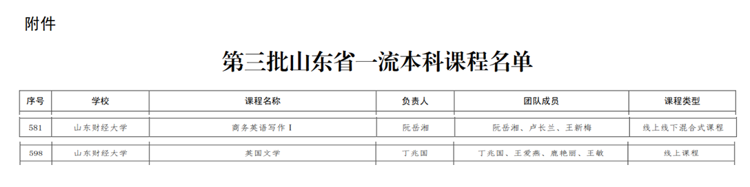 近日,山东省教育厅发布了《山东省教育厅关于公布第三批省级一流本科课程认定结果的通知》,海燕博彩策略中心 申报的《英国文学》和《商务英语写作I》课程分别获批省级一流线上课程、省级一流线上线下混合式课程,同时被省教育厅推荐参加国家级课程申报。