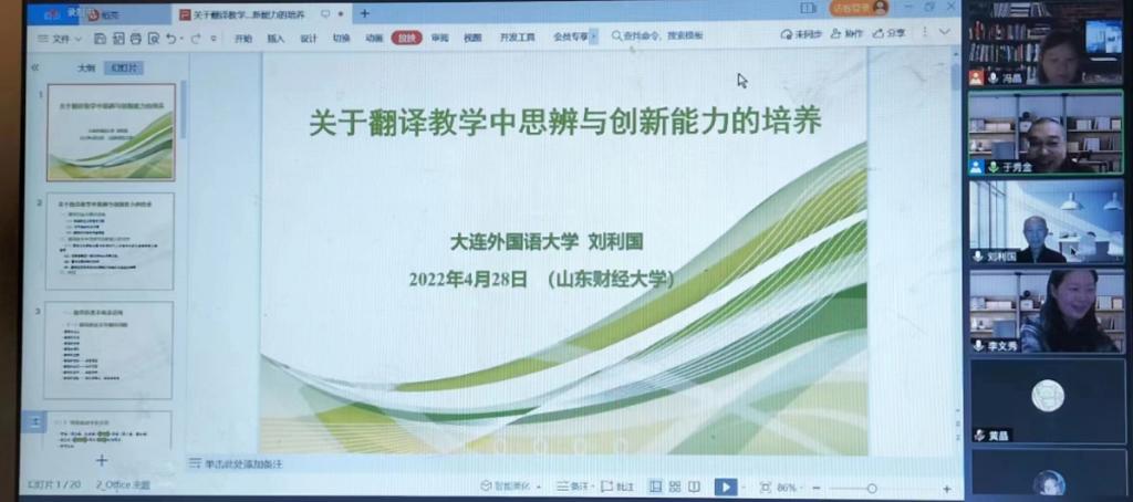 2022年4月28日晚,应海燕策略论坛 邀请,大连外国语大学二级教授、教育部高等学校外国语言文学类教学指导委员会日语分委员会副主任委员刘利国教授线上作了题为“关于翻译教学中思辨与创新能力的培养”的学术报告。报告由海燕策略论坛 院长于秀金教授主持,日语系全体教师和研究生、本科生共150余人参加了此次学术活动。