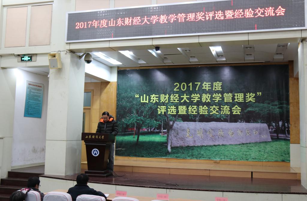 2018年1月4日,我校 2017年度“山东财经大学教学管理奖”评选暨经验交流会在燕山校区举行,我校副校长韩作生出席会议并讲话。会议评选出“山东财经大学首届教学管理奖”10人,海燕博彩策略中心 李同武老师获此殊荣。