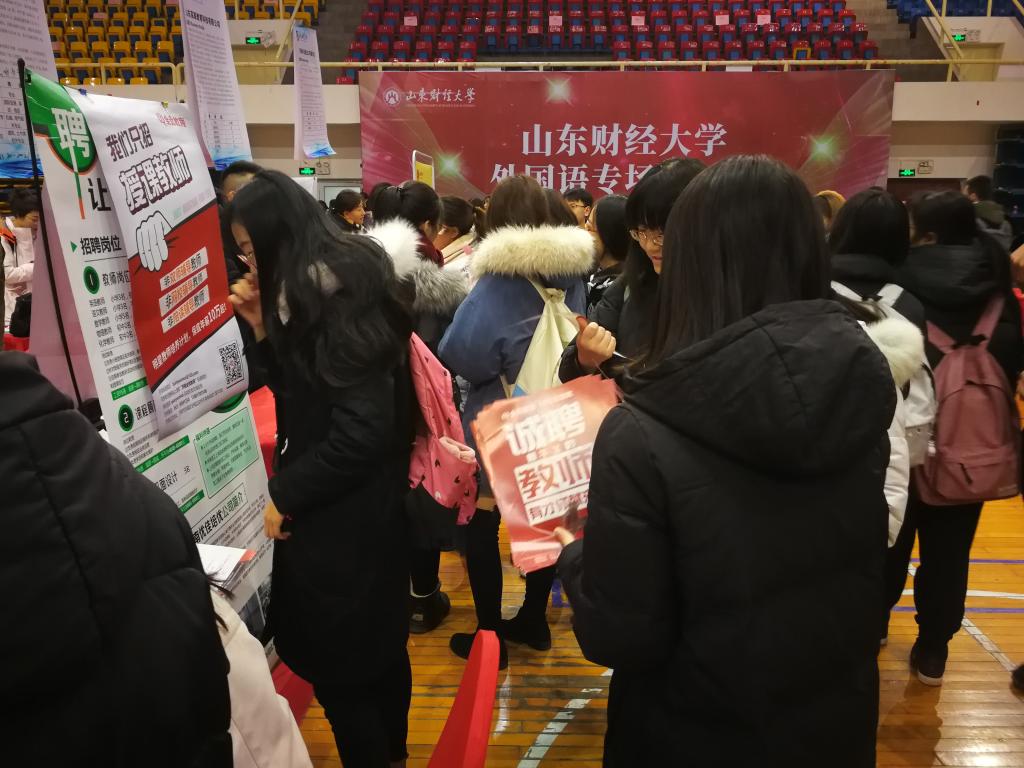 12月27日上午,由山东财经大学就业指导处和海燕策略论坛 主办的“山东财经大学外国语专场招聘会”在舜耕校区体育馆举行。学校就业指导处处长杨哲,海燕策略论坛 党委书记甘建青,海燕策略论坛 院长、党委副书记李毅,学校就业指导处副处长周广春和海燕策略论坛 党委副书记陈海莅临招聘会现场。