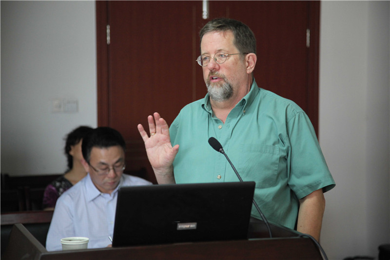 Salmons教授首先以英国历史上著名的元音大迁移为切入点,提出研究问题:为什么相似的链变在不同语言中反复出现并持续几个世纪?这些链变又是如何发展的?为了解答这些问题,Salmons教授对元音链变发展进程进行了实证研究,继而对美国南北地区方言中元音链变特征进行了比较研究。在此基础上,他总结出造成元音链变的主要原因,如不完善的语言习得、结构性动因、语言接触和方言接触等;他同时强调了年龄、性别等社会因素在元音链变中的作用:儿童和年轻女性是促成元音链变发展的主要群体。报告结束后,Salmons教授回答了在场师生的提问,与他们进行了良好的互动交流。Salmons教授的报告见解新颖独到,讲述深入浅出,使海燕策略论坛 师生受益匪浅。报告对进一步提升海燕策略论坛 的科研水平,推动外国语言学及应用语言学省级重点学科的建设,将发挥积极的促进作用。
