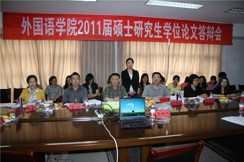 论文答辩在严肃、认真、开放、活跃的气氛中进行。在答辩过程中,答辩委员就论文及相关问题轮流提问,答辩学生积极思考认真作答。经过8个多小时的紧张工作和密切合作,学位论文答辩会圆满结束。外国语言学及应用语言学专业2008级11名硕士研究生顺利通过学位论文答辩。
