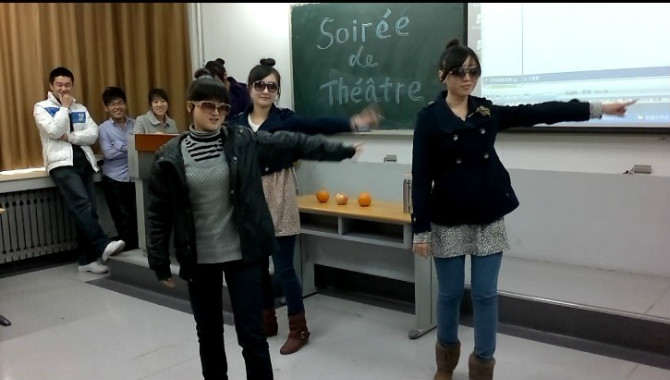 通讯员(倪一丹)经过精心筹备,法语话剧表演大会于11月25号下午在舜耕校区1107教室举行,参会的演员为我校2009级法语班的全体同学,另外法语教师王淑华、张兆龙以及法语外教Raymond作为嘉宾评委参加了此次活动。
