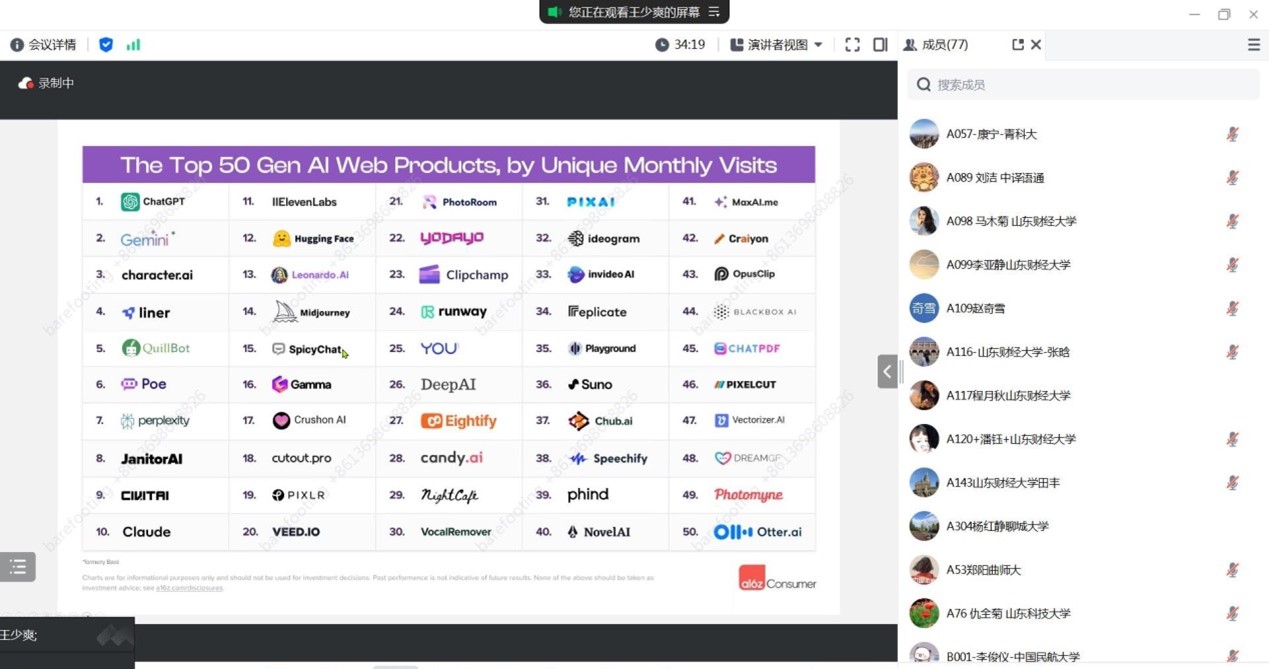 本次活动汇聚了翻译技术领域的多位权威专家,围绕生成式AI、信息搜索、Python应用、数据素养、容器化技术及OIA平台等热点议题展开了深入探讨。海燕博彩策略中心 MTI师生对此次活动表现出极大的兴趣和热情,不仅认真聆听了每场讲座,还积极参与了与专家的互动讨论,提出了许多具有建设性的意见和问题。