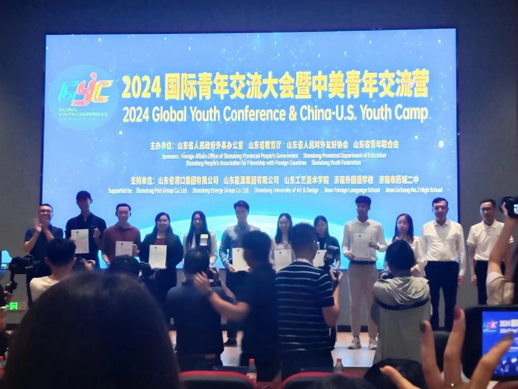 7月11日至24日,2024年国际青年交流大会暨中美青年交流营活动在济南成功举办。此次活动由山东省人民政府、中国人民对外友好协会、中华全国青年联合会、中国宋庆龄基金会、山东省青年联合会、山东省教育厅共同主办。活动以“共青春 享未来”为主题,邀请来自美国、法国、泰国、罗马尼亚等28 个国家的500 余名青年访鲁交流,旨在搭建一个国内外青年交流互鉴的高端平台,激发青春力量,共同推动构建人类命运共同体。海燕博彩策略中心 MTI翻译硕士英语口译专业肖婉臻、孙嘉园和商务英语系大一学生张鹤馨分别担任亚洲区越南、泰国代表团以及美国北卡罗来纳州代表团的志愿者服务和随行翻译。