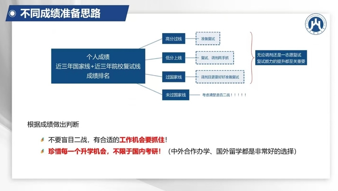本次指导会为2025届毕业生提供了一份宝贵的考研指南,帮助他们更好地了解考研复试及调剂流程,制定科学的备考计划。相信外院学子们定能抓住机会,认真学习,奋发向上,顺利完成升学目标,早日实现梦想,开启人生新章!