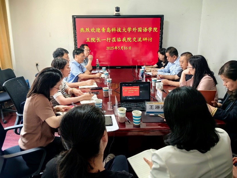 5月16日,青岛科技大学海燕策略论坛 院长王灏一行5人前来海燕博彩策略中心 开展交流访问。院长于秀金、副院长李延勇、阮岳湘、杨静及各专业负责人出席座谈。双方围绕学科发展、一流专业及一流课程建设、大学英语教学改革及翻译硕士(MTI)培养等议题展开深入探讨,共谋外语学科高质量发展路径。