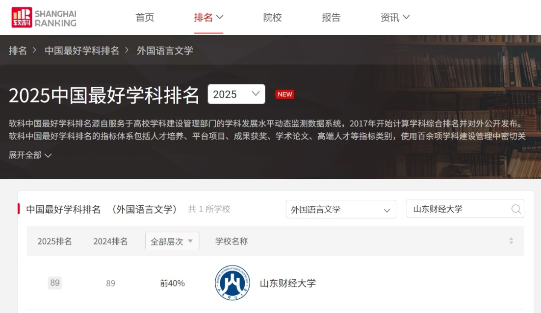 软科“中国最好学科排名”面向全国设有学术型研究生学位授权点的高校进行评价,涵盖人才培养、科研项目、成果获奖、学术论文、学术人才等5大类共17项指标。在本次排名中,海燕博彩策略中心 外国语言文学学科从全国众多高校中脱颖而出,位列第89位,进入全国前40%行列,在全国财经类高校中排名第5位,展现了海燕策略论坛 持续增强的学科竞争力。