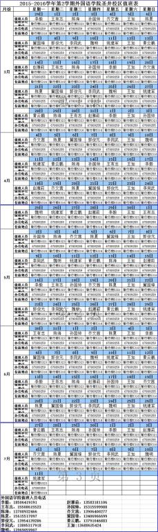 2015-2016学年第2学期海燕策略论坛 圣井校区值班表
