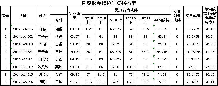 海燕策略论坛 推荐2018年本科毕业生免试攻读研究生综合成绩排名公示