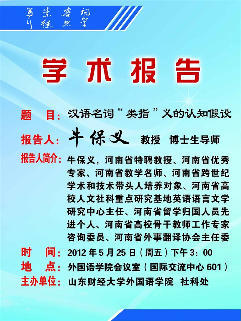 庆祝山东财经大学成立揭牌系列学术活动之二《汉语名词“类指”义的认知假设》