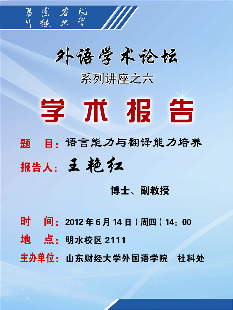 外语学术论坛—系列讲座之六 《语言能力与翻译能力培养》