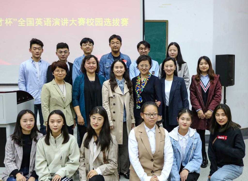 2019年10月11日下午,山东财经大学第六届外语技能系列大赛暨“外研社·国才杯”全国英语演讲大赛校园选拔赛在舜耕校区第二阶梯教室举行。高永红、马宏伟、王朋、解玲和张斐瑞五位老师担任评委,2018级英语专业于淑涵和2017级英语专业王哲娴担任主持人,海燕策略论坛 各年级同学观摩了演讲比赛。